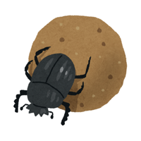 Beetle feeding on animal feces, rolls or burrows dung, recycles nutrients, very important for soil fertility.