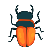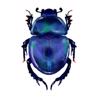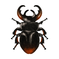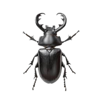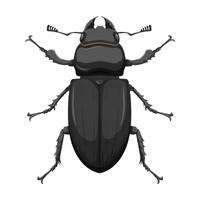 Beetle with protective body, defends territory, feeds on other insects or detritus, often has hard exoskeleton.