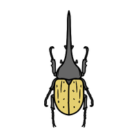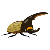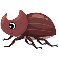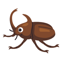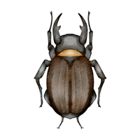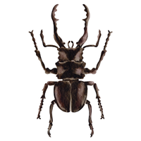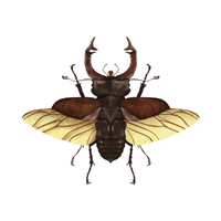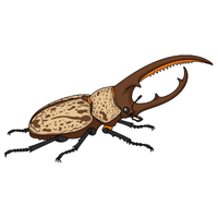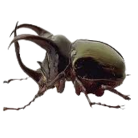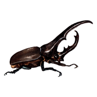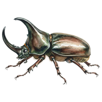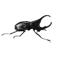 Strong, large beetle with horn-like projection, males use horns for fighting, feeds on rotting wood and fruits.
