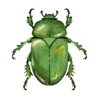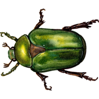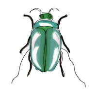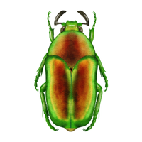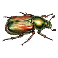 Small colorful beetle, metallic or iridescent, feeds on leaves or nectar, admired for bright shiny exoskeleton.