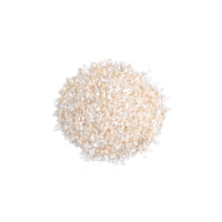 The grits are coarsely ground corn pieces commonly cooked into a thick, creamy breakfast dish in America.