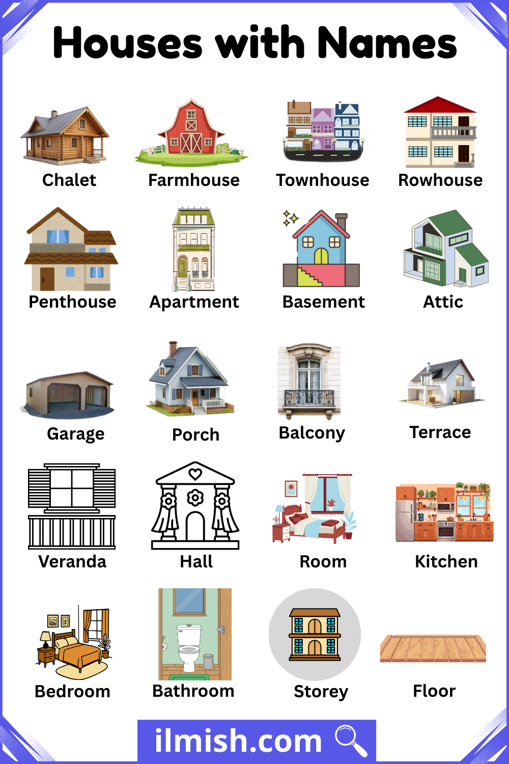 Types of Houses with Names in English