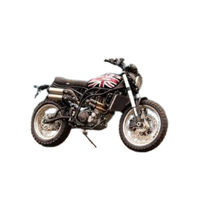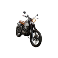 Retro inspired motorcycle with modern parts, raised exhaust, simple design, good balance, suitable for roads and light trails casual riding.
