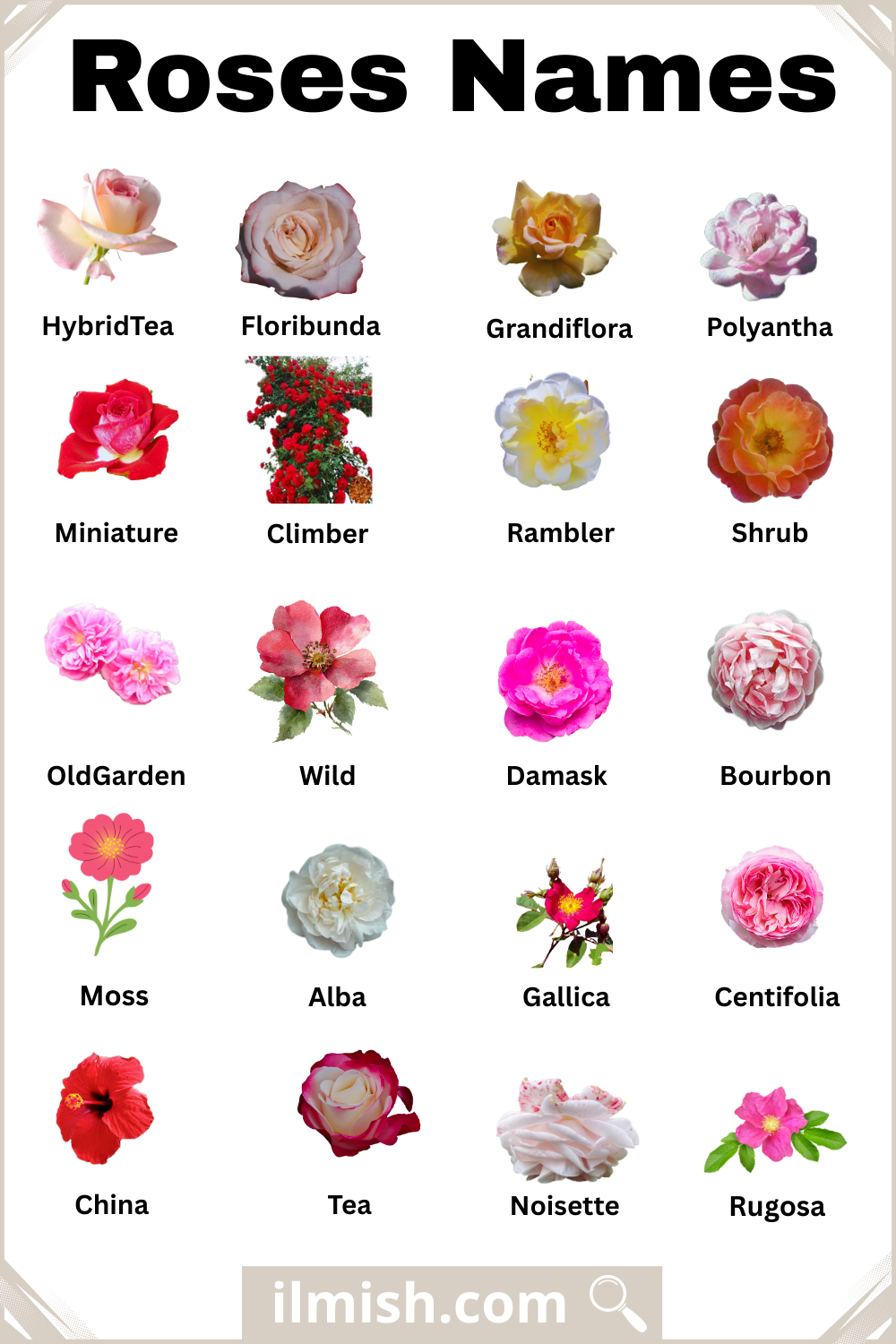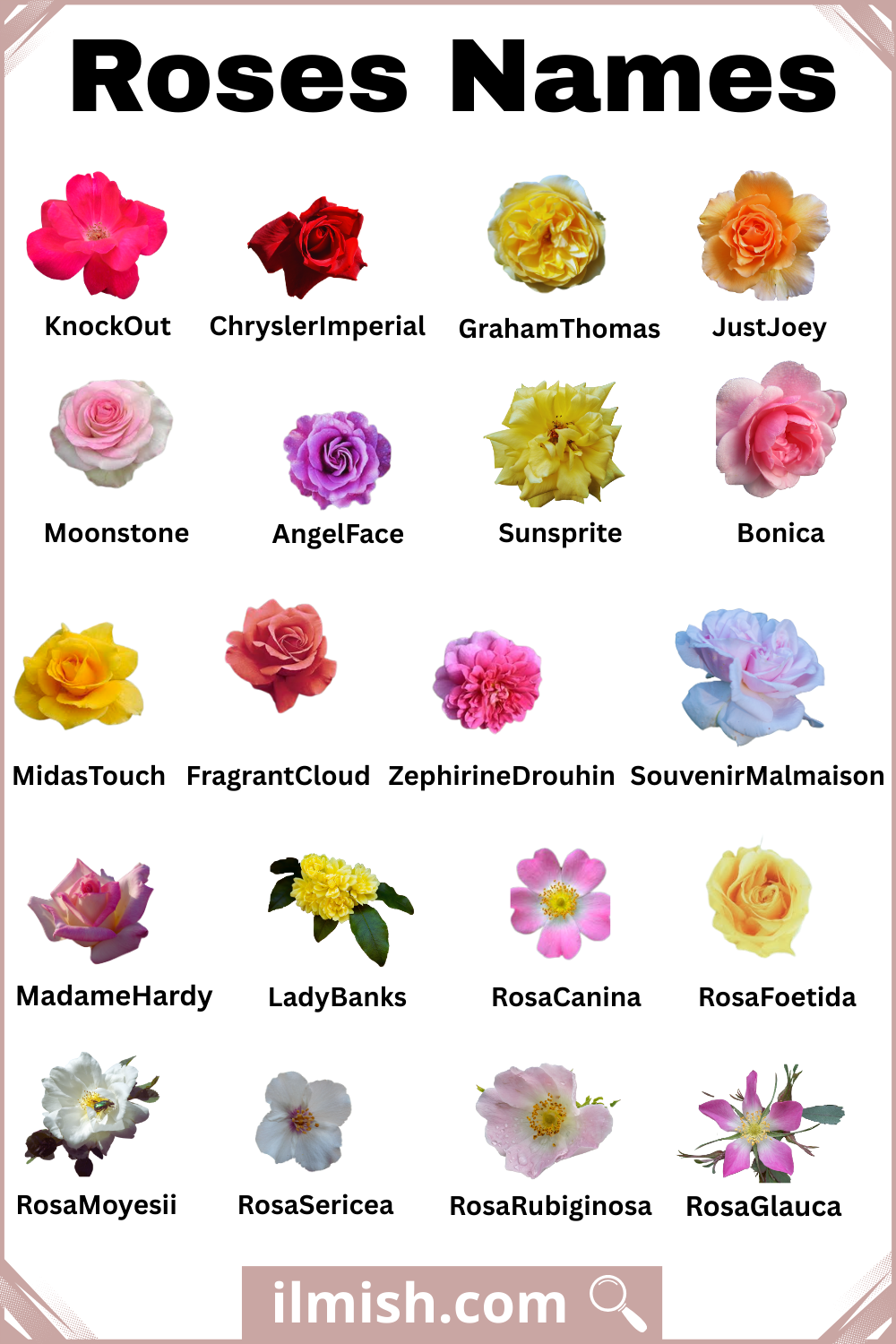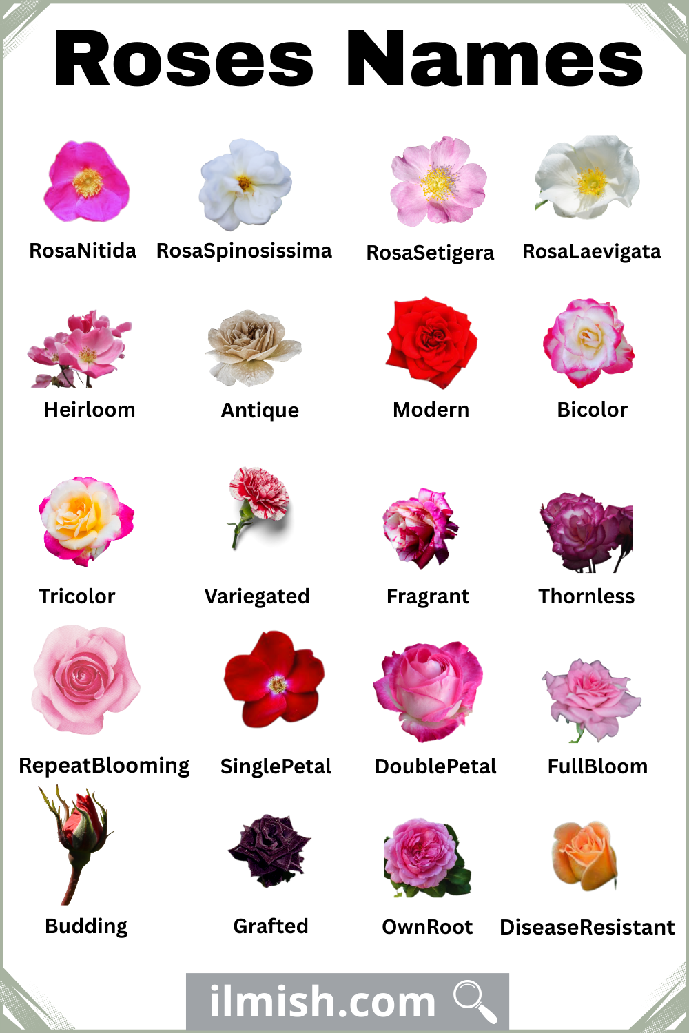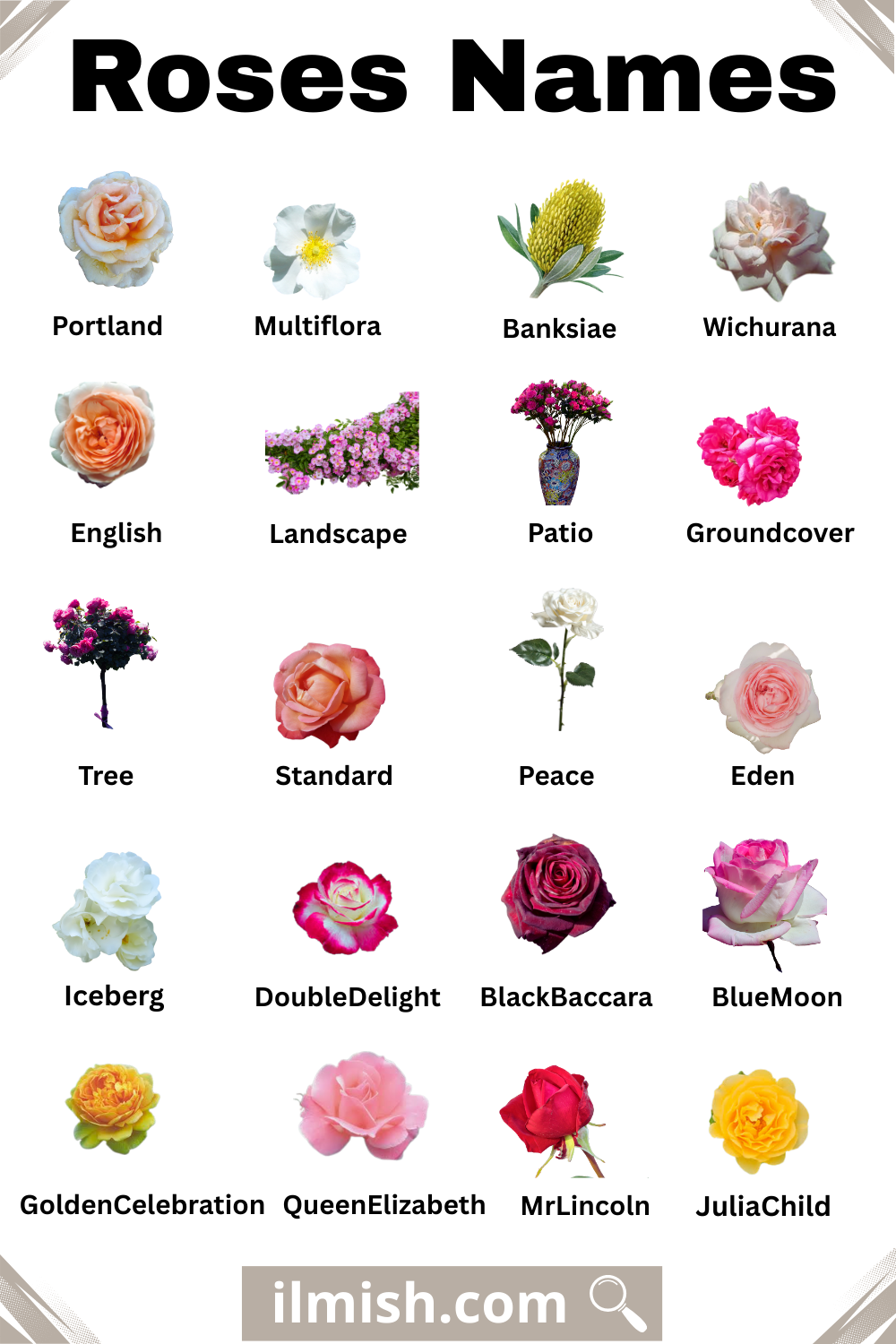 English | Roses with Names and Types