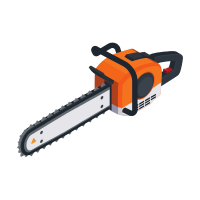 Motor-powered saw with rotating chain used for cutting trees and logs.