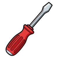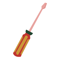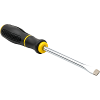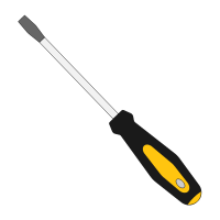 Screwdriver with single flat blade, fits straight-line screw heads.