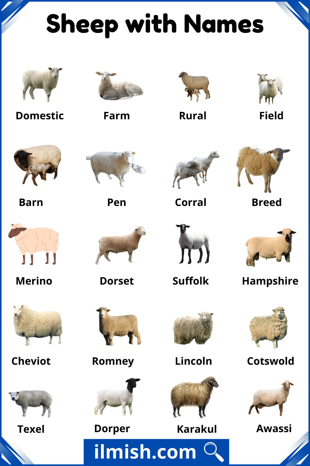 Different Sheep with Names and Types with Pictures