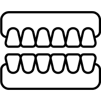 Curved row of teeth in upper or lower jaw.