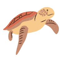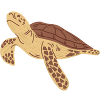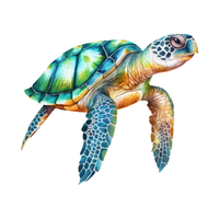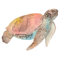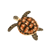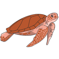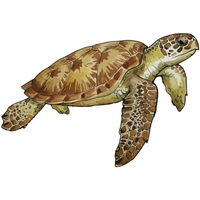 Strong-jawed sea turtle with reddish-brown shell, primarily eats crustaceans, common in subtropical and temperate oceans.