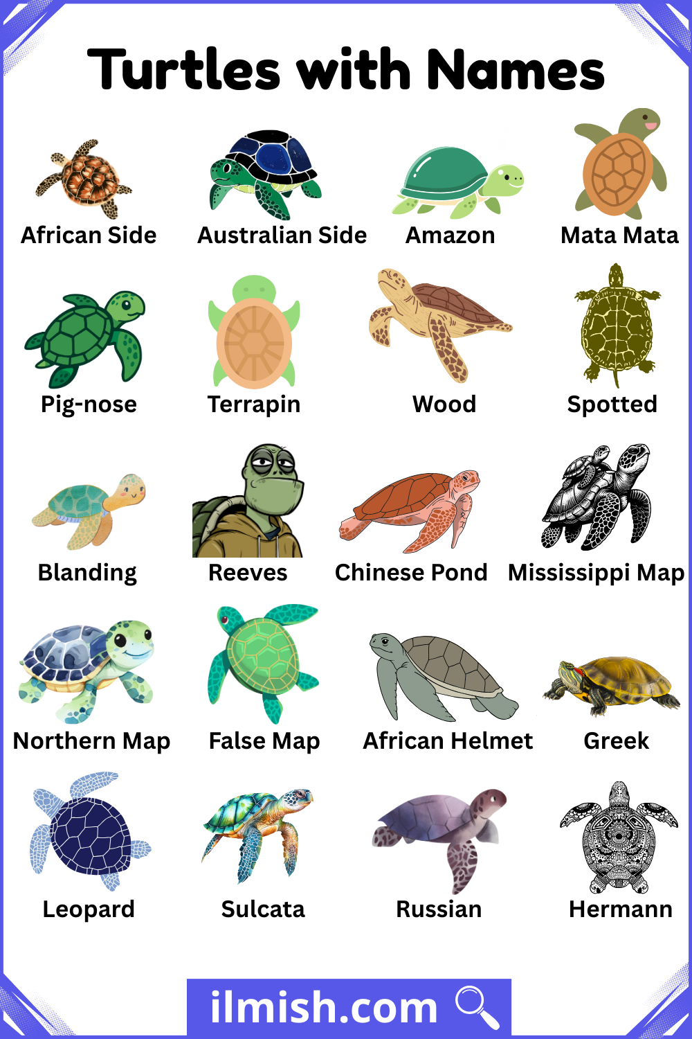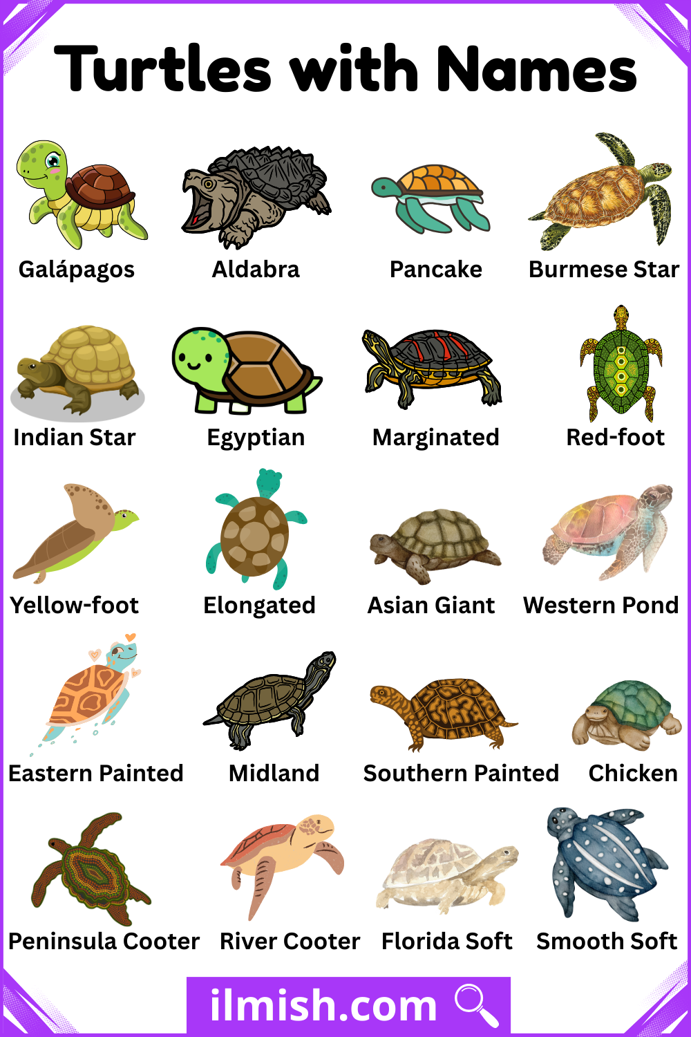 Popular Turtles and Name in English