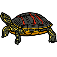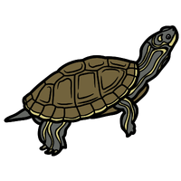 Painted turtle variant in southern US, brightly marked shell, semi-aquatic, feeds on plants, insects, and small fish.