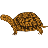 Freshwater turtle with domed shell, hinged lower shell allowing full closure, found in North American wetlands.
