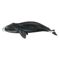 Slow-moving whale, floats when dead, heavily hunted in past centuries.
