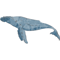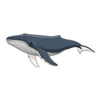 Famous for long songs, large fins, acrobatic jumps, migrates long distances yearly.