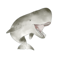Largest toothed whale, square head, deep diver, feeds mainly on squid.