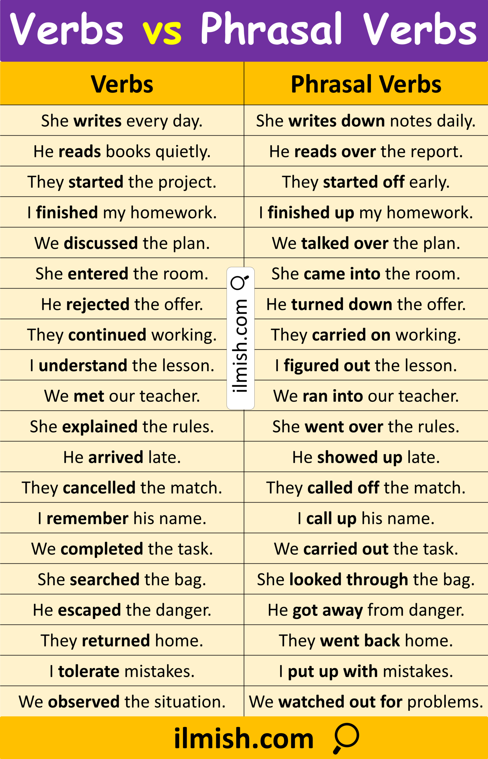 Comparison Table: Verbs vs Phrasal Verbs