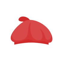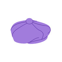 Round, soft flat hat, often knitted or wool, worn tilted to one side, popular in Europe and fashion.