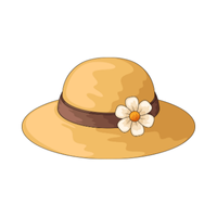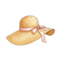 Wide-brimmed hat protecting from sunlight, often made from straw or fabric, ideal for summer outdoors.