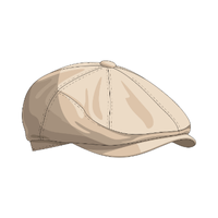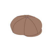 Rounded cap with a small stiff brim, casual vintage style, popular in early 20th-century fashion.